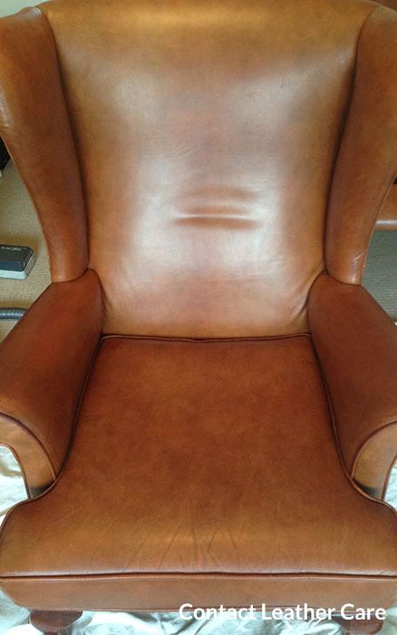 Below are genuine photos of a client’s Aniline leather wingback chair (and the images have not been doctored):